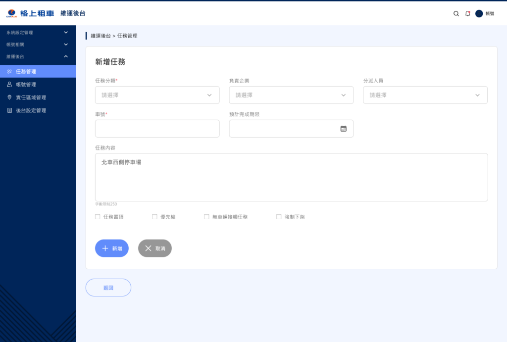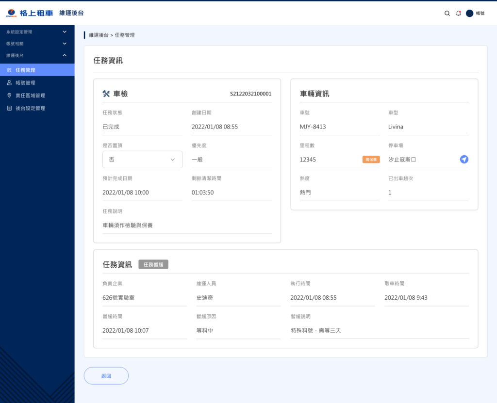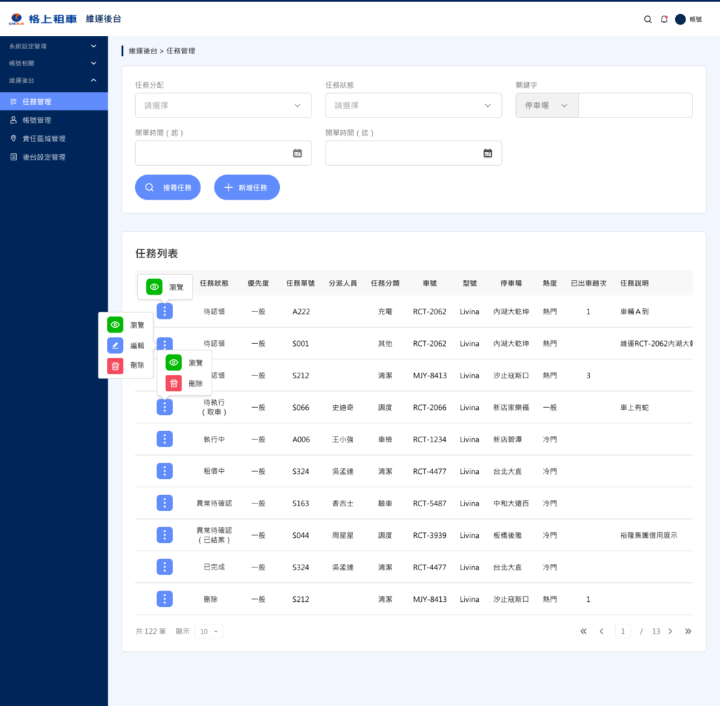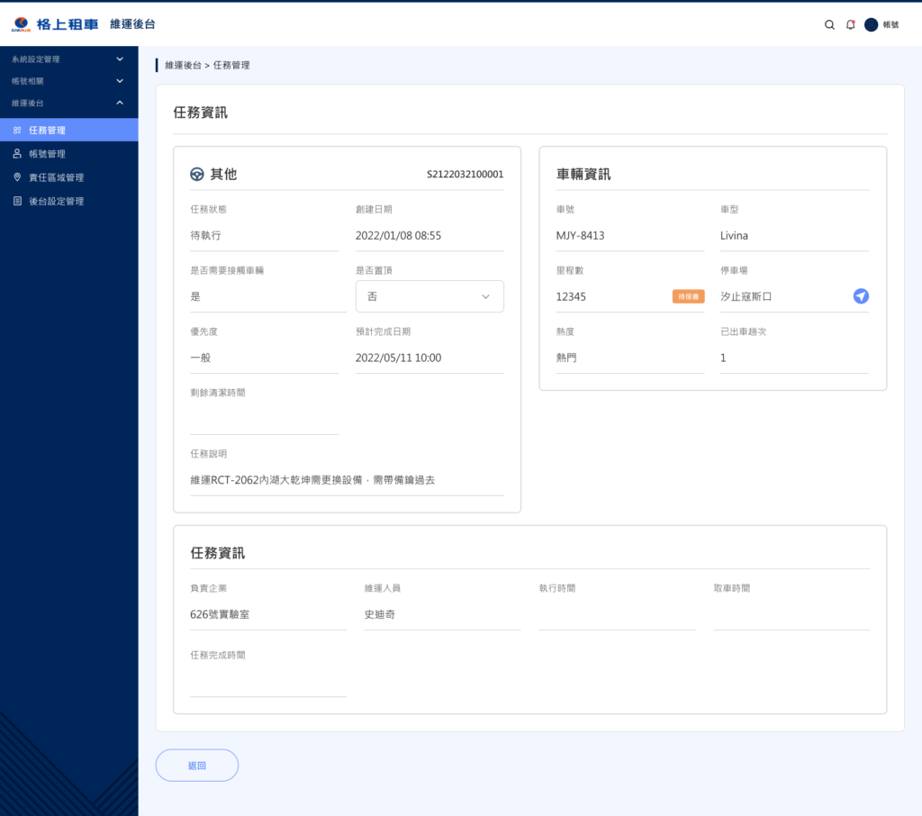 負責為格上租車規劃設計管理後台流程Role: UI/UX Design